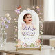 Welcome your guests to a magical celebration with our 'Fairy First Birthday' acrylic sign! This premium 18" x 24" sign features whimsical watercolor fairies, garden friends, and a customizable photo arch. The modern clear acrylic material adds a high-end boutique feel to your enchanted forest theme. Easy to personalize and perfect for garden or indoor parties!