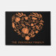 Cute painted orange fall pumpkins and foliage in a heart shape, with orange on black, customised with your family name. Simple autumn vibe.