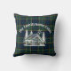 Bring cabin cosiness to your sofa or bed with this custom throw pillow. Featuring a hand-drawn log cabin with pine trees and sunshine over classic green-and-blue tartan plaid, it’s a charming decorative piece for a rustic lodge, mountain getaway, or woodland home. Personalise with your family name for the perfect snuggle-worthy gift or stylish accent.