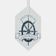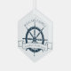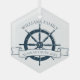 Chic custom summer vacation Christmas ornament gift for your beach cruise on the ocean featuring a navy blue boat steering wheel. This nautical themed design is perfect for classy matching family reunion keepsakes to commemorate the special trip. Personalize with your last name and year.