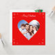 Cute modern custom family heart and snowflakes on red Christmas Greeting Card. Text ready to be personalised. Photo can be customised,