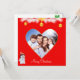 Custom family heart and cute snowman on red Christmas Greeting Card.