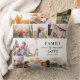 An elegant, modern Mother's Day gift: An elegant quote family photo collage throw pillow reading FAMILY where Life begins and Love never ends in pretty hand lettered script alongside modern typography and 10 of your favorite pictures. Text is fully customizable in the design tool. This is the pretty, elegant version in minimalist black and white.