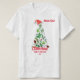 A shirt for the entire family includes a custom name for each family member. This adult shirt has Mum/Dad and the kids shirt has room for each child's name. The design features a unique watercolor "Christmas tree" made of the elements: pine cones, berries (red and blue), holly leaves and evergreen sprigs, stacked in a triangular, Christmas evergreen shape. The topper is a Santa's hat, red trimmed with white fur. Underneath the tree, in a red retro script font is your family name, arched slightly. The second line of type is "Family Christmas" and the year date is below that. The individual names are in the pocket position, also in the same red script font as the family surname. This design is simple to personalise and all the text can be edited to suit you and your family. Just click "Personalise" to begin.