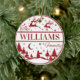 Add a classically festive touch to your Christmas tree this year with a personalised ornament that can be passed down for generations. This fun, yet traditional, red and white design features reindeer flying above a pine filled snow-scape with a lone snowman standing guard. Personalise by adding your last name. Makes a great gift that can be passed down as a family keepsake for years to come!