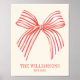 Celebrate your family’s legacy with this Custom Family Name Est Date Coquette Red Stirped Bow Poster, a charming addition to any home. Featuring a delicate red striped bow and elegant script, this design combines a soft, feminine touch with timeless personalisation. Perfect for showcasing your family name and established date, this poster makes a meaningful decor piece for living rooms, entryways, or family spaces. Ideal for those who appreciate romantic, coquette-inspired aesthetics, it also makes a thoughtful gift for housewarmings, weddings, or anniversaries. Add a touch of elegance and sentimentality to your home with this custom poster!