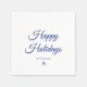 Simple and effective paper napkins wishing Happy Holidays to your guests. Easy to personalise! The template will allow you to add your own family name. With small and cute dark blue snowflakes. More versions and matching articles in my store.