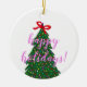 Custom Family Name Pink Christmas Tree Ceramic Tree Decoration