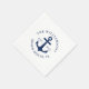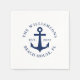Unique nautical paper napkins with a white and navy blue design that features an anchor and the text template. It's easy to personalise the design with your family name, year established, state or other text.