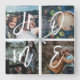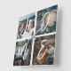 Personalised family keepsake cloxk with 4 of your family photos arranged in a square grid photo collage and a beautiful hand-lettered script spelling HOME. Great gift for mum, dad, family, friends, parents, and grandparents!