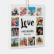 Create your own personalised 12 photo collage, Christmas holiday ornament with your custom images on a simple modern white background. The Christmas holiday ornament face also features your family name, established year and a "Love" handwritten script. Add your favourite photos, designs or artworks to create something really unique.