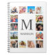 Create your own personalized 14 photo collage, notebook with your custom images on a simple modern white background. The notebook face also features your monogram. Add your favorite photos, designs or artworks to create something really unique.