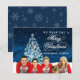 Put your family photo on the background with a white snowflake Christmas tree and personalise the text
