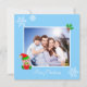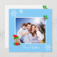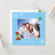 Custom family photo and cute little elf on light blue Christmas Greeting Card.