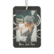 Custom Family Photo Modern Script Black air freshener. Modern design in black and white colours with abstract white circles on a black background and a photo template. Personalise with your favourite family photo and add any text you like. Great as a keepsake or a gift.