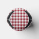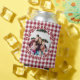 Personalised Christmas-themed can cooler featuring a custom photo, your family name, the year, and an editable holiday message, such as "Merry Christmas". Design with a red and white plaid background. Double-sided.