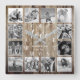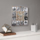 Create your own personalised 12 photo collage wall clock with your custom images on a rustic farmhouse style wooden plank background. The clock face also features your family name, established year and a "Love" handwritten script. Add your favourite photos, designs or artworks to create something really unique. To edit this design template, simply upload your own images and edit text fields as shown above. You can easily add more text or images, customise fonts and background.
