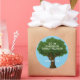 Personalise your sky blue family reunion souvenir sticker with your family's name and year of reunion in white text. A tree is in the background. At the bottom you can add where your reunion is taking place.