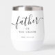 Custom Father of the Groom Script Calligraphy Name Thermal Wine Tumbler. Easy to customise elegant script typography monogram. Perfect wedding party or bridal party gift accessory idea!