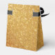 Custom faux gold image class of graduation party favor boxes. Elegant boxes for graduate students celebrating their grad year. Add your own high school name and year. Stylish typography template with tassel hat logo. Customizable background color and bow color. Bulk gift idea for him or her. Glamorous sparkly golden background print with glittery glimmers. 2025 and on.