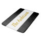 Faux (not foil) gold script can be personalised with your desired message. Gold look text is on a large white stripe going across the centre. A black stripe is above and below the white one.