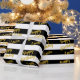 Custom Faux Gold Script on Black and White Stripes Wrapping Paper