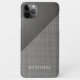 Contemporary light, medium, and dark grey grey coloured faux leather and linen texture look cellphone case. With room to customise with a name, monogram, or initials of your choice. Beautiful, modern, and cool cover for the trend-savvy and art-loving hip trendsetter, artsy motif lover who wants to protect their phone from dust and dirt, wear and tear. This design is available in Apple iPhone 6, 7, and 8 Plus, 10 or X, XR, XS, 11, 12, 13 Mini, 14, 15 Plus, and Pro Max cellphone cases. Show off your style, look fashionable, and feel stylish with a unique design on a mobile device accessory of your choice.