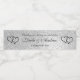 Classic faux silver glitter image print double heart wedding party favour water bottle labels. Custom elegant silvery wrap around waterbottle stickers with two interlocking hearts for newlyweds. Personalised DIY template with stylish script calligraphy typography. Chic glamourous design with name of bride and groom plus date of marriage. Use spring water drinks as classy table decoration or free thank you favour for guests at the reception party. Customisable wraparound background colour to match your theme. Thank you for sharing our special day. Also nice for fancy wedding rehearsal dinner, romantic engagement, bachelorette, anniversary, bridal shower etc. Can also be used for making your own trendy beer and wine bottles. Luxury party supplies and luxurious accessories for your special day. Change quantity to geth the cheap bulk price. Two entwined / interlocked love symbols symbolising marriage. Shiney glittery glimmers and sparkly sparkles background.