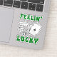 Feeling Lucky sticker featuring lucky aces, dice, and green text is the perfect manifestation decal for your laptop or water bottle. This St Patricks Day sticker showcases the lucky girl syndrome quote "everything always works out for me," bringing good luck vibes to all your belongings. Celebrate your lucky era with this vibrant green vinyl sticker that captures the retro aesthetic. A fun party favor or small gift, this lucky charm sticker is a must-have for those who live the lucky girl lifestyle.