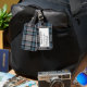 Handsome luggage tag done in the grey Ferguson tartan plaid pattern. A white text area, on the front, has black text ready to personalise with your information. The perfect way to spot your luggage, and makes a great gift idea.
