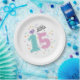 Celebrate a young girl’s milestone birthday in style with these adorable “Fifteen and Fabulous” customisable paper plates. Featuring a whimsical bluebird chirping out the phrase “Fifteen and Fabulous,” this playful design is bursting with personality. A large polka dot and heart pattern number 15, colourful confetti, and retro-style lettering give this design a fun and youthful vibe that’s perfect for celebrating a 15th birthday. Add a name and your own sentiment to create unique birthday party accessories that will delight the birthday girl and her guests.