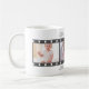 Personalised Photo Keepsake. Celebrate your most cherished moments with this customisable film strip photo mug. Featuring a unique movie reel-inspired design, this mug lets you showcase three of your favourite photos framed in a cinematic layout, along with your custom text above and below. Perfect as a heartfelt gift for parents, grandparents, or anyone who enjoys their coffee with a side of memories.