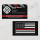 This design features a firefighter flag theme with a thin red line stripe. Customize with the name, position, and contact information of the firefighter, captain, chief or any employee working at the fire department. Features a thin red line flag on the back.