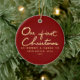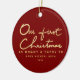 A memorable Christmas gift for new parents. This holiday season, send out this beautiful keepsake photo Christmas ornament to new parents to commemorate the birth of their child. The ornament features " Our First Christmas " in a beautifully hand-lettered faux gold font. Personalise the ornament by replacing the sample name and year. More styles and matching products like holiday cards, postage stamps, gift wrapping paper, etc. are also available in our store.