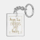 Happy First Fathers Day photo keychain, editable so you can add your own photo to the front, the back reads Happy First Fathers Day Daddy with heart detail in gold typography, a keepsake gift.