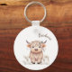 Custom First Name Cute Modern Boho Highland Cow Key Ring