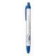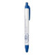 Customise this fish and tackle shop marketing pen for a fisherman business. A cool periwinkle and navy blue fishing design with an open mouthed bass and your custom company details on the side.
