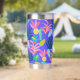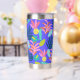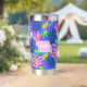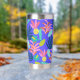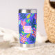 Custom floral blue monogram cute Thermal Tumbler with initials, name, quote, message. Pretty colourful modern pattern with pineapples, flowers for a unique gift. Colourful pink blue yellow thermal bottle for women, mothers, moms, wifes,teachers, boss, friends, girls, coffee tea addict for birthdays, christmas, mothers'day. Use this stainless tumbler for travel, transport for hot tea, hot coffee, cold beverages.