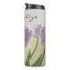 Elegant purple tulip photo image design with personalized name and monogrammed initial letters.