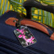 Pretty floral luggage tag, with pink blooms on both sides. Customise with any personal ID you wish on the back.
