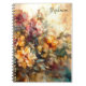 Inspire creativity with this romantic watercolor notebook of orange, yellow, pink, and red flowers on a beige-blue-green background. Add your name or message for a custom, vibrant touch, perfect for floral lovers and dreamers.