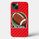 Custom Football on Red Diagonal Stripes Case-Mate iPhone Case