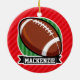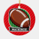 Custom Football on Red Diagonal Stripes Ceramic Tree Decoration