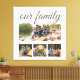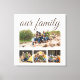 4-family photo canvas print with customisable text in an elegant script font, "Our family." Add your favourite photos to this print to make a beautiful keepsake that will be treasured for years to come.
