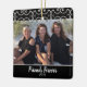 Customise this friends Christmas ornament that features elegant scrolls and a black background with the sentiment "Friends Forever" in a white handwritten vintage script typography on the front and the Bible scripture verse from Proverbs that says, "A sweet friendship refreshes the soul" on the back. Back of the photo also features the year. Easy to customise with your own photos and year, and the background colour is also customisable. Start a new tradition to create your friends' personal ornament each Christmas. A wonderful gift to give to your friends or to keep for yourself.