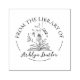 A beautiful addition to your personal library. This design features curved from the library of text around a whimsical design of an open book. Add your name to make this a completely custom, one of a kind stamp!