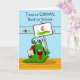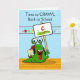 Custom front Back to School greeting card with an excited caterpillar wearing a red backpack, holding an alphabet sign with the letter C for caterpillar, and holding a graded paper with an A+. Change or add to the text on the cover as desired. Back to School greeting card with a fun theme. Clipart thanks to Pixabay/Openclipart. Design © Shoaff Ballanger Studios.