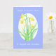 A pretty, customisable Greeting Card for St David's Day, with a clump of daffodils in a light blue border, from a watercolour painting by Judy Adamson.
