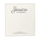 Simple, modern, and feminine off-white custom notepad with your first name across the top in a large handwritten script. Your last name sits right below in a modern sans serif font. Personalised with your contact information at the bottom