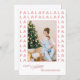 Unique, classy, trendy, pretty and decorative seasonal Christmas Holiday and Happy New Year greetings card. Cute Happy Holidays greeting text and room to customise or personalise with a photo, family name (or individual names) and message of your choice. Framed by dusty rose blush pink coloured FA LA LA word art on a white background. And a customisable season greeting poem on the backside of the card.
